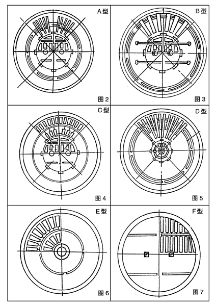 充氣箱在庫內(nèi)排列時(shí),原則上要求實(shí)際排列面積占總面積的比例越大越好,攪拌庫和混合式均化庫中心區(qū)(攪拌區(qū)),對這點(diǎn)要求更為重要,現(xiàn)提供A、B、C、D、E、F六種基本排列形式供選用。