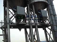 散裝機(jī)主要用于散裝水泥及其它粉狀物料,用來控制散裝機(jī)裝車時(shí)的水泥落料狀態(tài);“斜槽風(fēng)機(jī)”用來使輸送斜槽內(nèi)水泥物料流態(tài)化,散裝機(jī)為其主體設(shè)備,其下料頭伸縮長度為1.6米,以適應(yīng)不同車型的裝車要求。