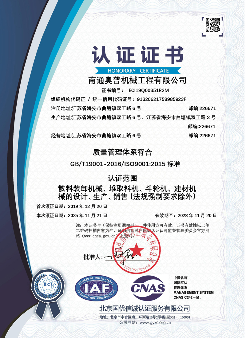 質(zhì)量,是企業(yè)的生命。奧普人深知:創(chuàng)造優(yōu)質(zhì)可靠的產(chǎn)品,才是企業(yè)屹立于行業(yè)前端的基石。公司將“客戶的需求是我們的追求”作為永恒的質(zhì)量承諾,嚴(yán)格實(shí)施 ISO9001 質(zhì)控體系,制定了詳細(xì)嚴(yán)謹(jǐn)?shù)某绦蛭募?,確保質(zhì)量體系持續(xù)改進(jìn),有效運(yùn)行。公司在材料保障上嚴(yán)格把關(guān)、在過程控制中精益求精,現(xiàn)建有檢測中心,配備了精良的檢測設(shè)備,從材料的物化分析到結(jié)構(gòu)制作件的尺寸測量、焊縫探測,再到產(chǎn)品預(yù)裝試驗(yàn),表面質(zhì)量檢測等,為產(chǎn)品生產(chǎn)周期內(nèi)全方位質(zhì)量控制提供了可靠的硬件保障。