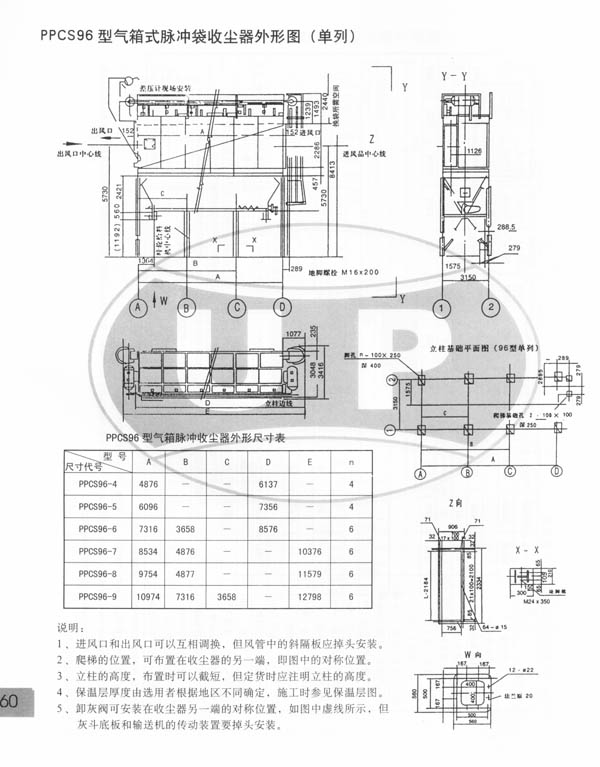PPCS96型氣箱式脈沖袋收塵器技術(shù)性能表