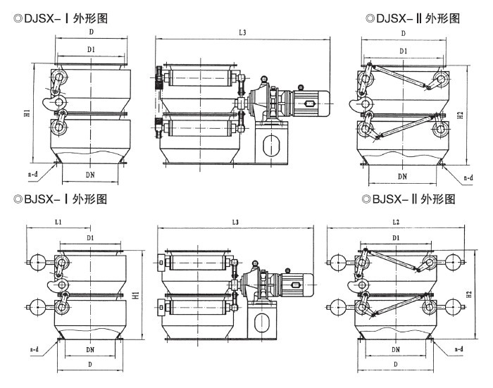 鎖氣翻板卸灰閥為上下交替開閉,自動(dòng)復(fù)位機(jī)構(gòu)。分為:z為重錘自動(dòng)復(fù)位機(jī)構(gòu),具有運(yùn)轉(zhuǎn)平穩(wěn)、節(jié)能,卸灰量大、小可調(diào),卸灰、鎖氣可靠之功能。C為吊錘自動(dòng)復(fù)位機(jī)構(gòu),具有占地面積省、節(jié)能,卸灰調(diào)節(jié)方便,卸灰、鎖氣可靠之功能。B為凸輪、連桿傳動(dòng),重量自動(dòng)復(fù)位機(jī)構(gòu);D為凸輪連桿傳動(dòng),彈簧自動(dòng)復(fù)位機(jī)構(gòu),結(jié)構(gòu)緊湊、設(shè)計(jì)合理、運(yùn)轉(zhuǎn)平穩(wěn),卸灰、鎖氣可靠。是各種無(wú)粘度的固體粉料,小于Φ10mm的顆粒料,晶體料,團(tuán)狀料,給、卸料工況的理想設(shè)備。Ⅰ型為單板卸料,Ⅱ型為雙板卸料。
