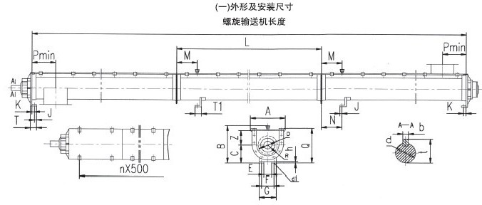 GX型螺旋輸送機安裝尺寸及長度組合
